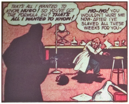 Marvel's other adversaries included Captain Nazi and a nuclear-powered robot named Mister Atom. Matching Captain Marvel's adopted power from ancient heroes was Ibac, an evil magician who gained his power from the ancient villians Ivan the Terrible, Cesare Borgia, Attila the Hun, and Caligula.